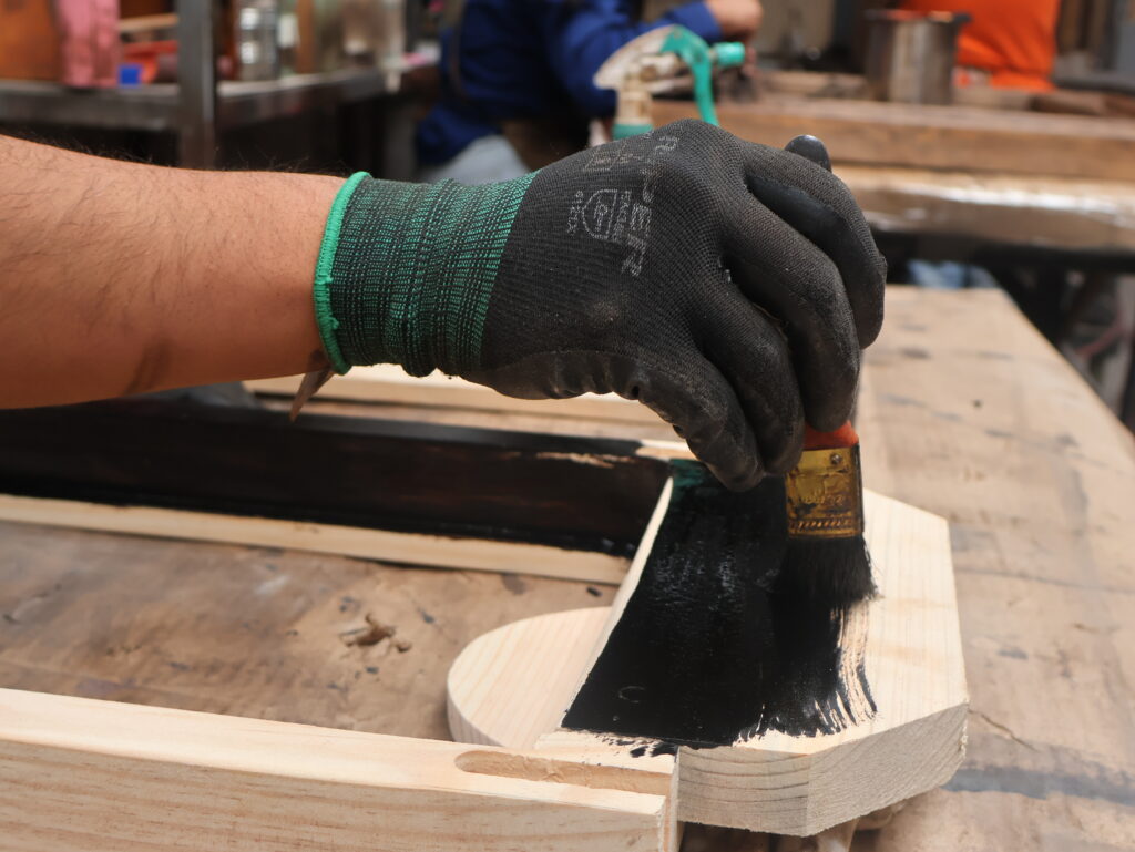 - Aplicación de una capa de primer para sellar la madera y resaltar los detalles.